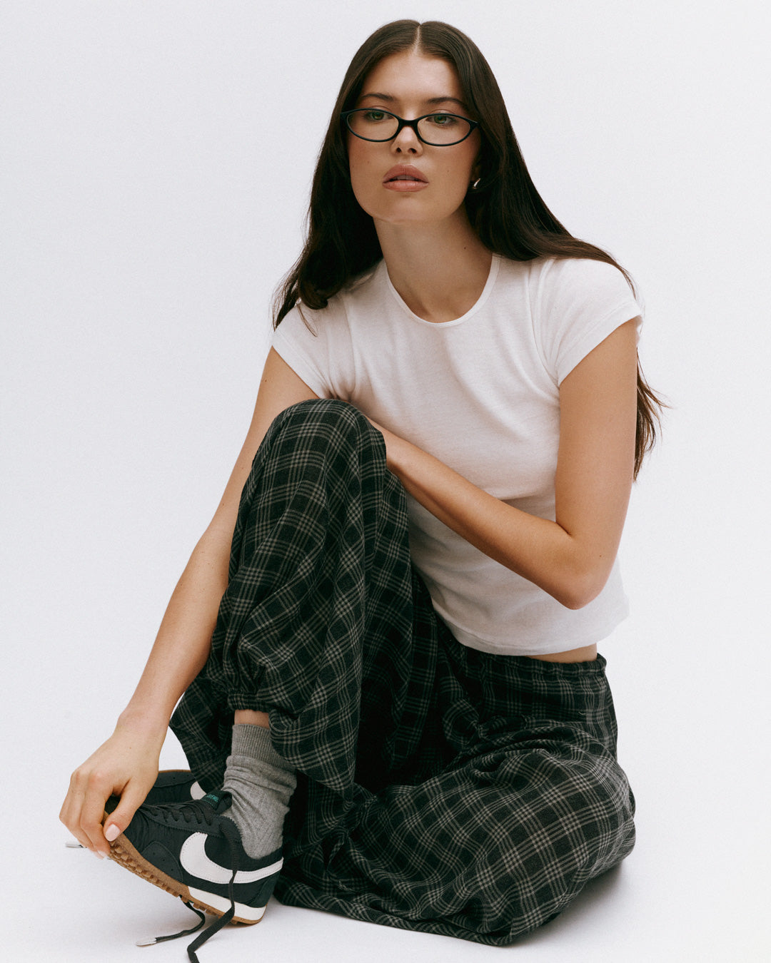Our take on the classic cat-eye. Ruves sculptured blend of soft and sharp, for that effortlessly elevated silhouette - a timeless staple. Also available in Torte with a green lense.