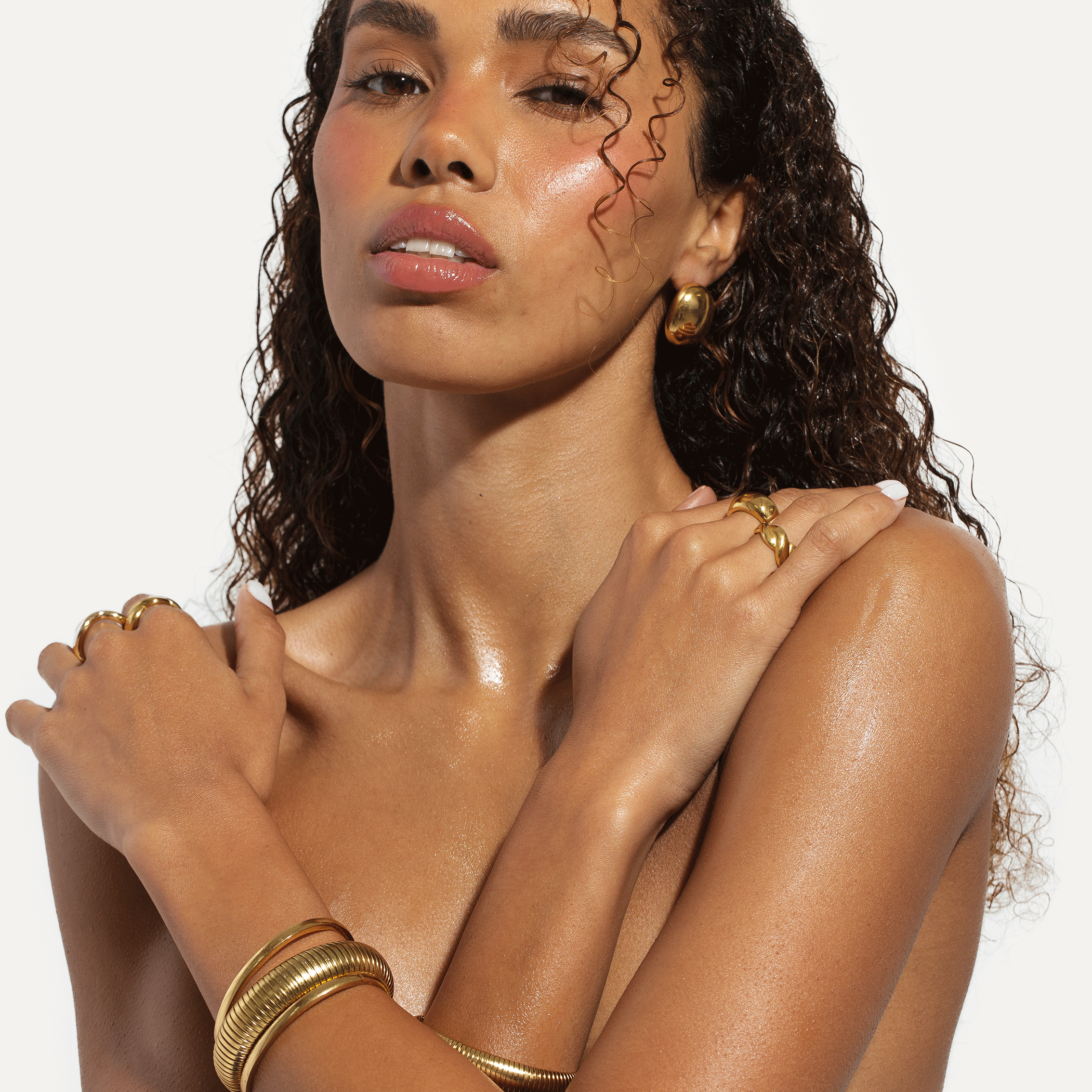 Shower, swim, sweat, apply lotions or sanitiser and they will stay gold.