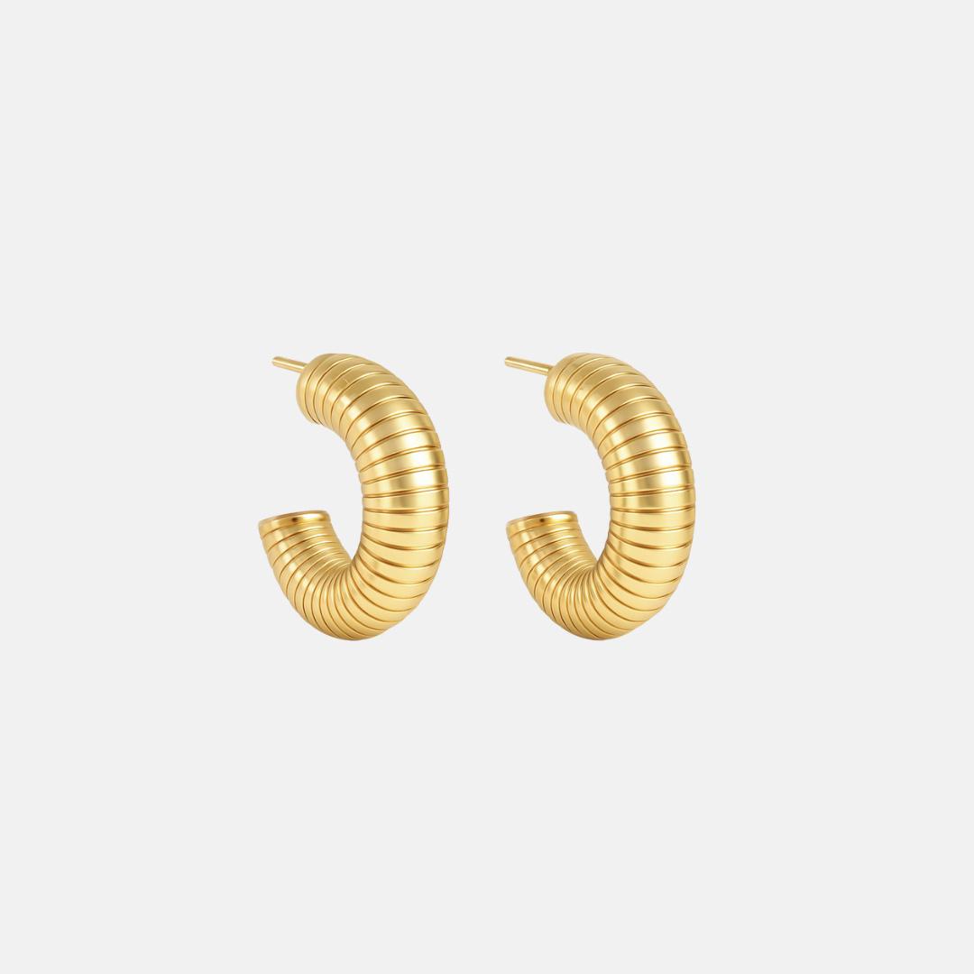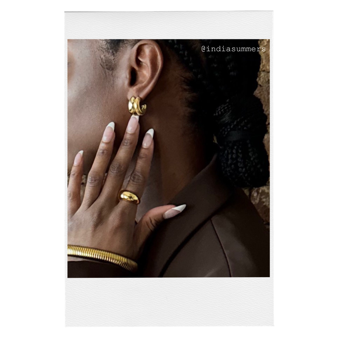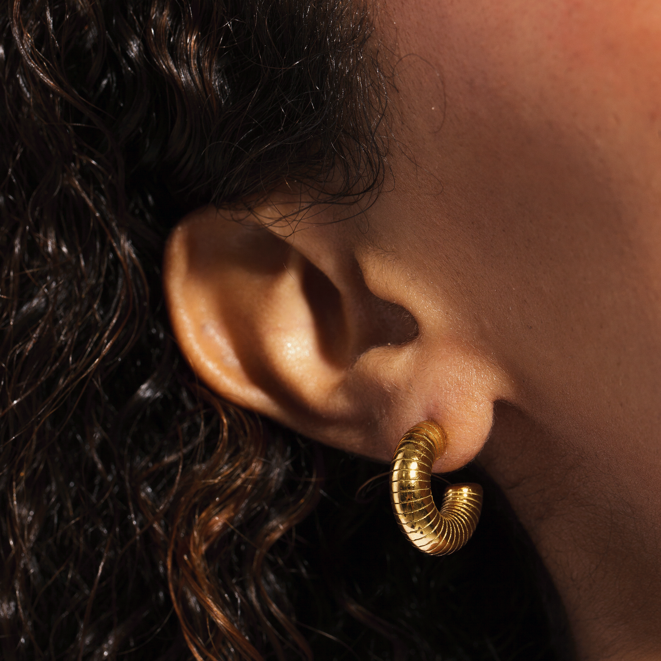 Our Ocie hoops are vintage inspired with a ribbed silhouette, wear single or double up for an elevated look.